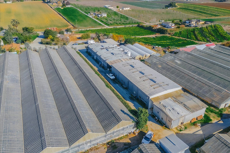 Three warehouses total 11,600 SF, including an event facility with kitchen, offices, bathrooms, and walk-in refrigeration; a shipping warehouse with cold storage and office; and a 1,600 SF high-bay utility building. Additional structures include a historic barn, Victorian farmhouse ready for restoration, and a classic tractor shed. Water is managed by two 15,000-gallon tanks on a concrete slab.